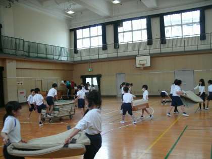みんなで協力してマットをかたづけた後で、今日の学習の「ふりかえり」をひとりひとり書いていました。