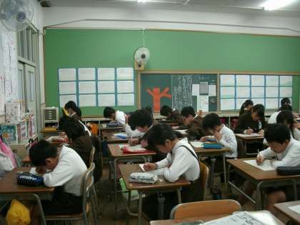 6年生は、国語のテスト中でした。集中して問題を解いていました。
