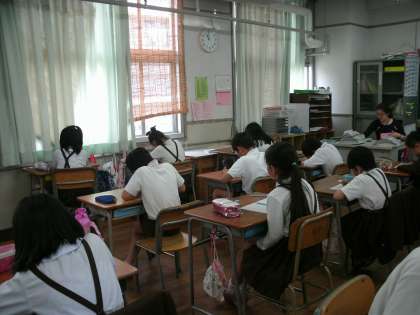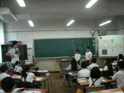 4年1組は、送り仮名の学習をしていました。4年2組は、テストをしていました。