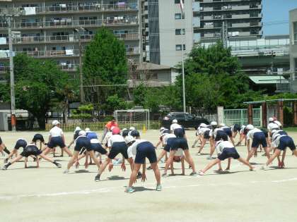 3時間目は、5・6年生の「夢・授業」です。高学年の準備運動は、低学年より難しくなりました。「うまくできないときは、どうやったらできるようになるか工夫してみよう」できるようになるとみんなとてもうれしそうな笑顔になりました。
