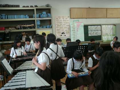 5年生は、音楽室で合唱と、合奏の練習をしていました。合唱は「森はいきている(うさぎとりす)」、合奏は「カルメン前奏曲」。どちらも難しい曲ですが、一生懸命に練習している様子はさわやかでした。どんどん上達していくことでしょう。