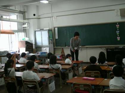 1年1組は、朝の健康調べをしていました。ひとりひとり今朝の健康状態をみんなに話します。名前を呼ばれると、「はい、元気です。」「はい、少し寝不足です。」などしっかりと答えていました。