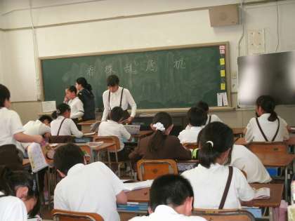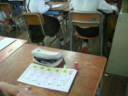 6年生は、漢字ドリルの練習が終わり、班で集めているところでした。