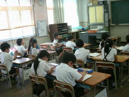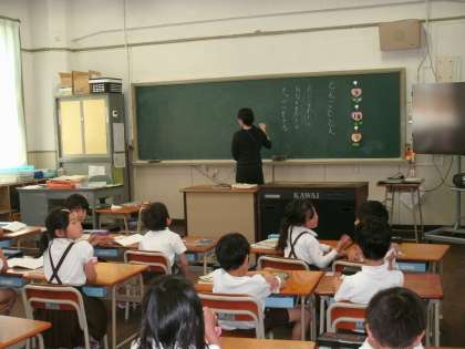 1年2組は、国語の学習中です。「とんこととん」の導入です。いろいろな音について話し合っていました。