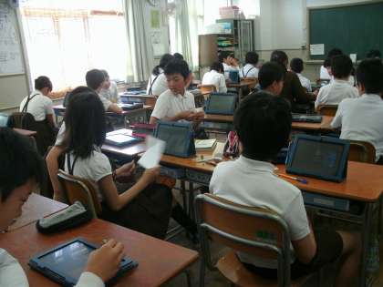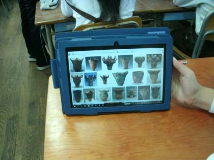 6年生は、図工の時間でした。土器について調べています。タブレットを一人一台ずつ活用して調べました。