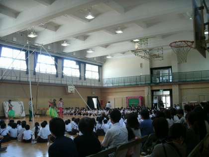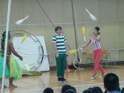 本年度初めての土曜授業を実施しました。港区弁天町を拠点に活動を展開しておられる「いくらサーカス」の皆さんのパフォーマンスを鑑賞しました。保護者の方々も多数ご来校いただき、ありがとうございました。準備した保護者席が満席になり、立ち見になってしまい、申し訳ありませんでした。