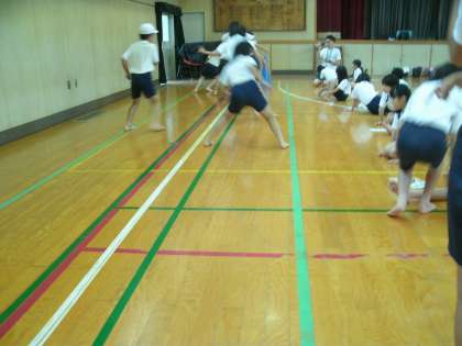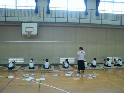 体育館では、反復横とび、上体おこし、握力、長座体前屈の計測を行います。どの種目にも自分たちの持てる力を十分に発揮しようとするがんばりがみられました。