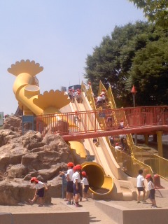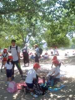 昼食は扇町公園で班ごとに食べました。2年生が1年生に優しく「どこで食べたい」とたずねていました。木陰の涼しい場所を選んで美味しそうなお弁当をもりもり食べていました。昼食後は扇町公園の遊具で遊びました。「遊ぶ」「食べる」「学ぶ」「あ・た・ま」をしっかり使って考えることが出来た遠足でした。行き帰りの乗車マナーもたいへん良くできていました。