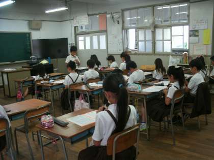 4年2組は、音楽の学習中でした。リコーダーの練習をしていました。個人練習をした後、全体であわせていました。