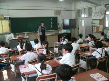 1年2組は、道徳の学習をしていました。副読本の「1年1組の赤いボール」という話を読みました。