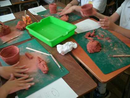 6年生は、図工で土器づくりをしていました。完成予想図をもとにていねいに作業に取り組んでいました。イメージ通りの作品に仕上がると良いですね。