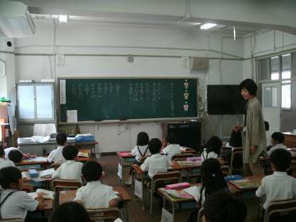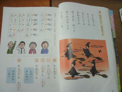 1年1組は、国語の「おばさんとおばあさん」の学習をしていました。長音をひらがなで書き表す学習です。「おじいさん」「おにいさん」「おねえさん」「ふうせん」「くうき」などの書き方をおぼえていました。