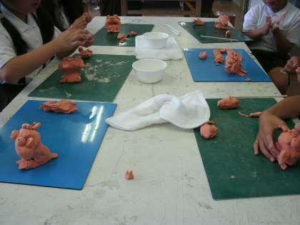 4年生は、1組・2組一緒に図工室で「シーサーづくり」をしていました。あじのある表情のシーサーが出来上がっていきました。