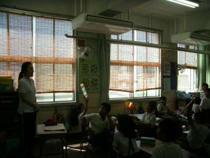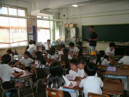 2年1組は、教育実習生の自己紹介の後、実習生さんクイズを班で考えていました。1か月間どうぞよろしくお願いします。