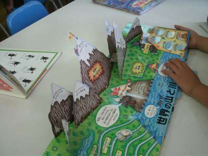 1年2組の子どもたちが、お気に入りの飛び出す絵本を見せてくれました。