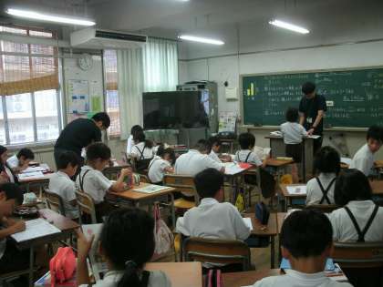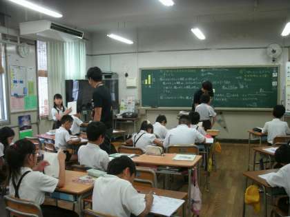 4年1組は、算数の学習をしていました。「○倍になっている大きさの求め方」を考えていました。