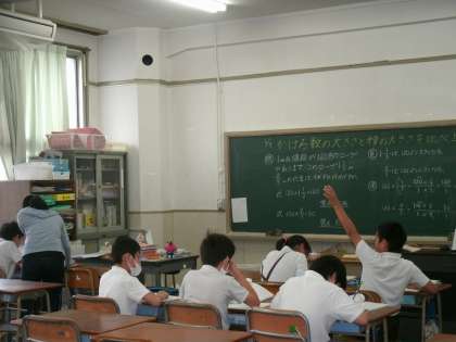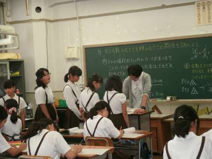 6年生は、習熟度別のクラスに分かれて、算数の学習をしていました。分数×分数の計算の仕方を考えています。