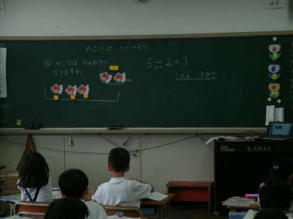 1年1組は、算数の学習をしていました。「のこりはいくつかな」を考えていました。