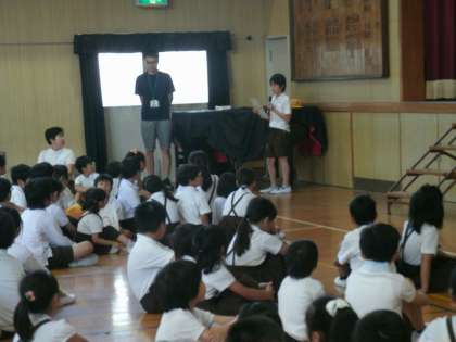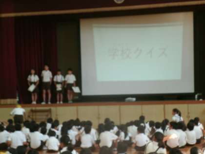 木曜日の朝は、児童集会があります。今朝は集会委員による学校クイズでした。