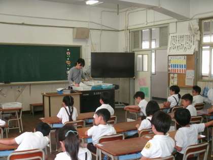 1年生は朝の会で2時間目のプール水泳の約束を確認していました。
