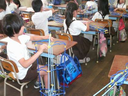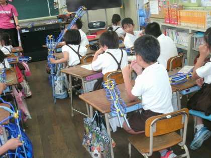 2年2組は、ミニトマトの支柱の確認をしていました。