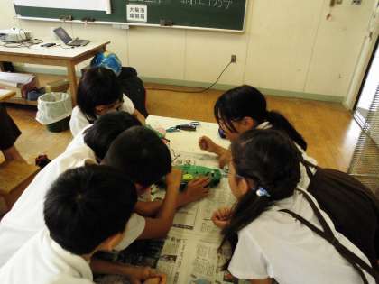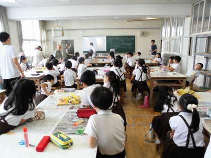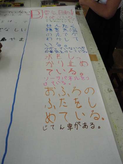 今日の環境学習では,はじめに講師の方から地球温暖化についてお話をしていただきました。スライドと説明が大変わかりやすく,子どもたちもよく理解していたようでした。授業の最後には自分たちにできることを考えて発表しあいました。これからの生活に生かしてほしいと思います。
