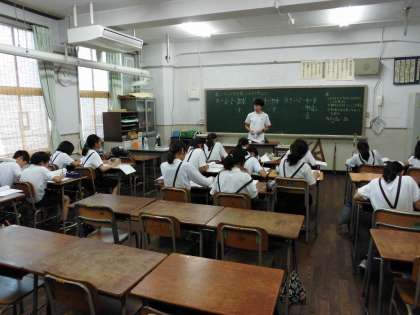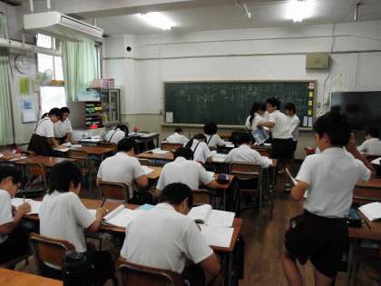 算数「分数のわり算」を学習しています。40人の子ども達を2つの教室に分けて2人の教員で指導しています。2回目ですが、計算はかなりしっかりできていました。