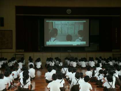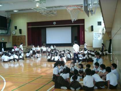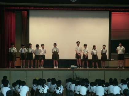 木曜日の朝は、児童集会があります。初めに集会委員会が作成した映像をみました。「ミッションインポッシィブル」の曲にあわせて楽しい映像が流れます。題名は「はんあそびについてひろめよう」です。今年度から児童集会で班遊びをすることになりました。班遊びとは、縦割り班で決めた遊びを児童集会の時にするというものです。集会委員からの提案が終わると班ごとに相談タイムが始まりました。来週する班遊びを相談して決めていました。来週の児童集会は晴れて運動場で仲良く楽しく班遊びができますように。