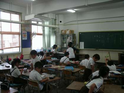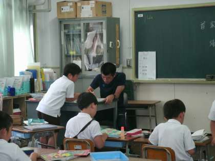 2年1組は、テストのまちがい直しが終わったところでした。先生に確認してもらった人から静かに読書をしていました。