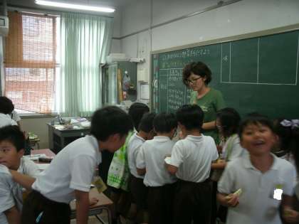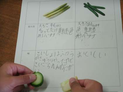 3年生は、なにわの伝統野菜を育てています。今日は、毛馬きゅうりとふつうのきゅうりを比べていました。観察の最後は食べ比べをしました。味のちがいを各自の舌で体験しました。栽培の指導をしてくださっている「なにわ伝統野菜の会」の皆様、ありがとうございます。