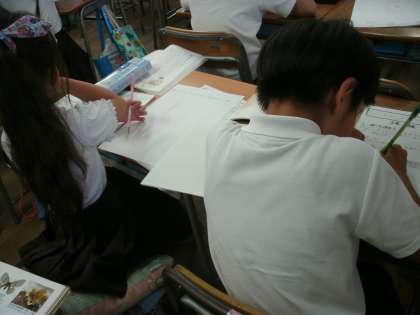 3年生は、国語の学習をしていました。「調べて書こう わたしのレポート」のしあげ段階でした。