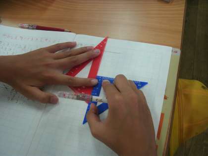 4年1組は、算数の学習をしていました。平行な直線の書き方を考えていました。