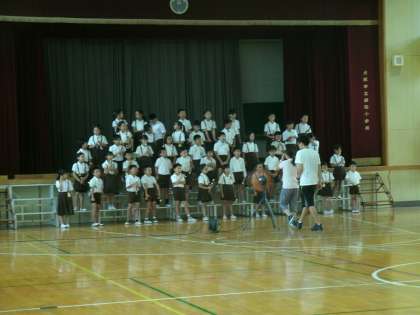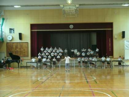 4年生が、講堂で音楽発表会の練習をしていました。