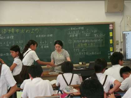 6年生は、算数の学習で体積を求めていました。