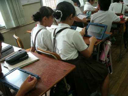 6年生は、家庭科の学習をしていました。タブレットを活用して学習を進めます。