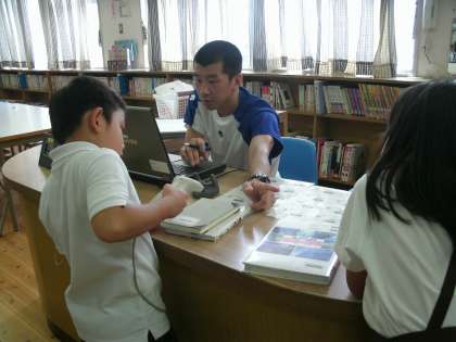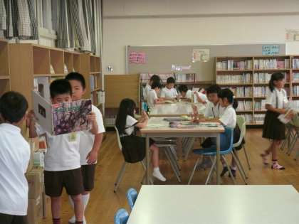 2年1組は、図書室で読書をしていました。先生に助けてもらいながら、バーコードを上手に読み込んで本の返却・貸出をしていました。