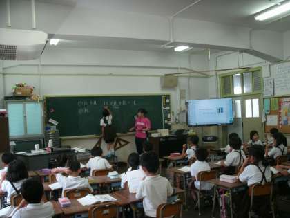 2年2組は、算数の学習をしていました。1L3dLの水が入った水筒と1Lの水が入った水筒があります。2つの水筒の水をあわせると…