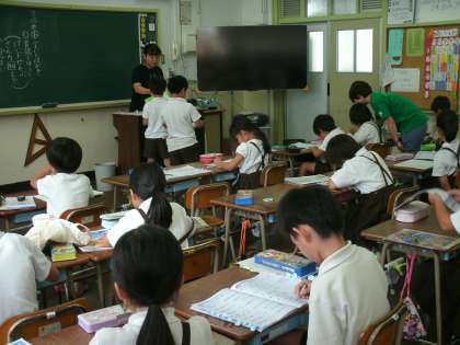 2年2組は、1学期のふり返りカードを書き終え、計算ドリルのしあげに入っていました。