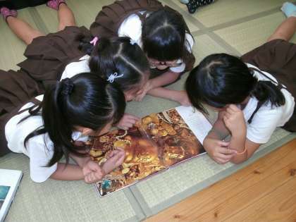 4年1組は、図書室で読書をしていました。4年生にとっても、畳のスペースは、くつろぎながら読書ができる人気の場所です。