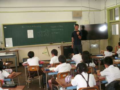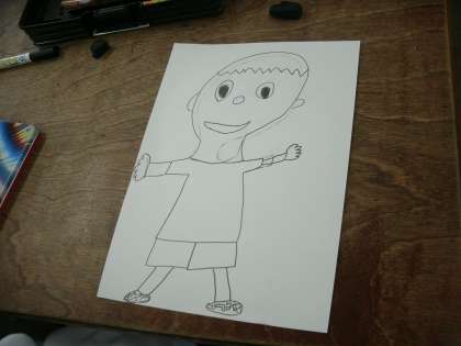 2年1組は、図工で「空にぐうんと手をのばせ」という題で絵を描いていました。