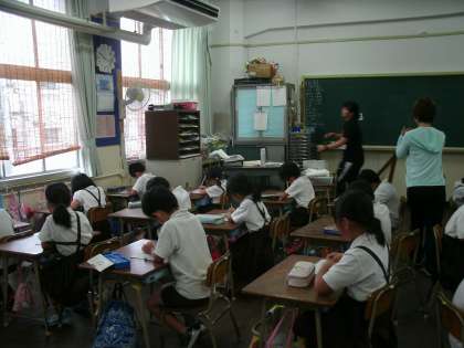 2年2組は、漢字のテストをしていました。1学期、たくさんの漢字をならいました。全部書けるようにしっかり復習しましょう。