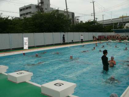 5年生・6年生はプール水泳をしていました。あおり足にならないように注意して平泳ぎの練習をしていました。授業最後の自由時間では、歓声をあげて楽しんでいました。