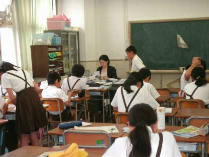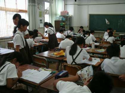 6年生は、算数ドリルの1学期の学習ページを仕上げて担任の先生に確認してもらっていました。完了した人は静かに読書をしたり、悩んでいる友だちの支援に行ったりしていました。