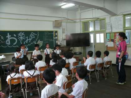 2年2組は、お楽しみ会をしていました。グループですてきな発表をしていました。