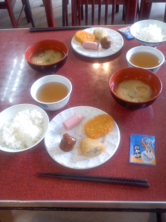今朝のメニューです。しっかり食べて8時半から登山です。
