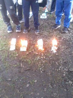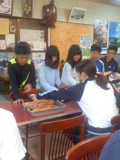 今日の朝食は「カートンドッグ」です。空の牛乳パックの中にアルミはくで包んだホットドッグを入れて牛乳パックを燃やします。