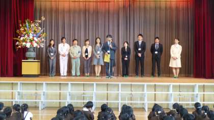 最初に、本校に着任された教職員(10名)の紹介を行いました。その後は始業式です。始業式では、担任等の発表もあり、子ども達は歓声をあげながら、自分の担任の先生はだれになるのか気にしながら発表を聞き入っていました。