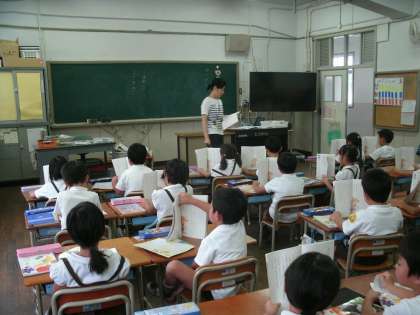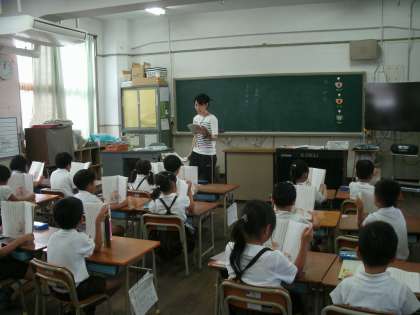 1年2組も国語の学習をしていました。「かいがら」の追いかけ読みをしていました。