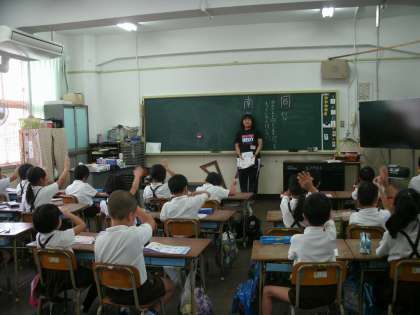 2年2組は、国語の学習をしていました。新出漢字の「同」と「南」の練習をしていました。