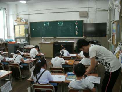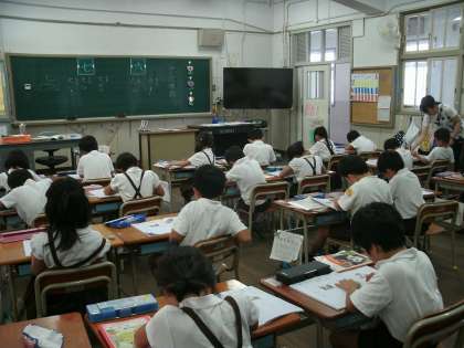 1年2組は、国語の学習をしていました。漢字の「六」と「七」を練習しています。